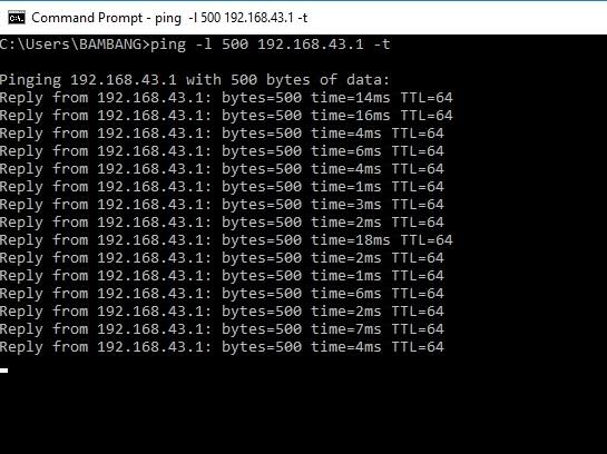 9. Jika hasil dari "ping" menyatakan "Reply From.... TTL" itu artinya IP Address sudah berhasil terkoneksi satu sama lain.