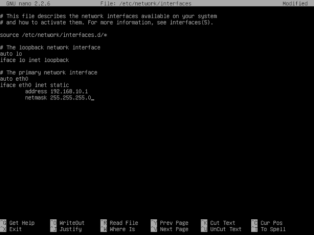 3. Save (CTRL+X) dan restart dengan mengetik "service networking restart"